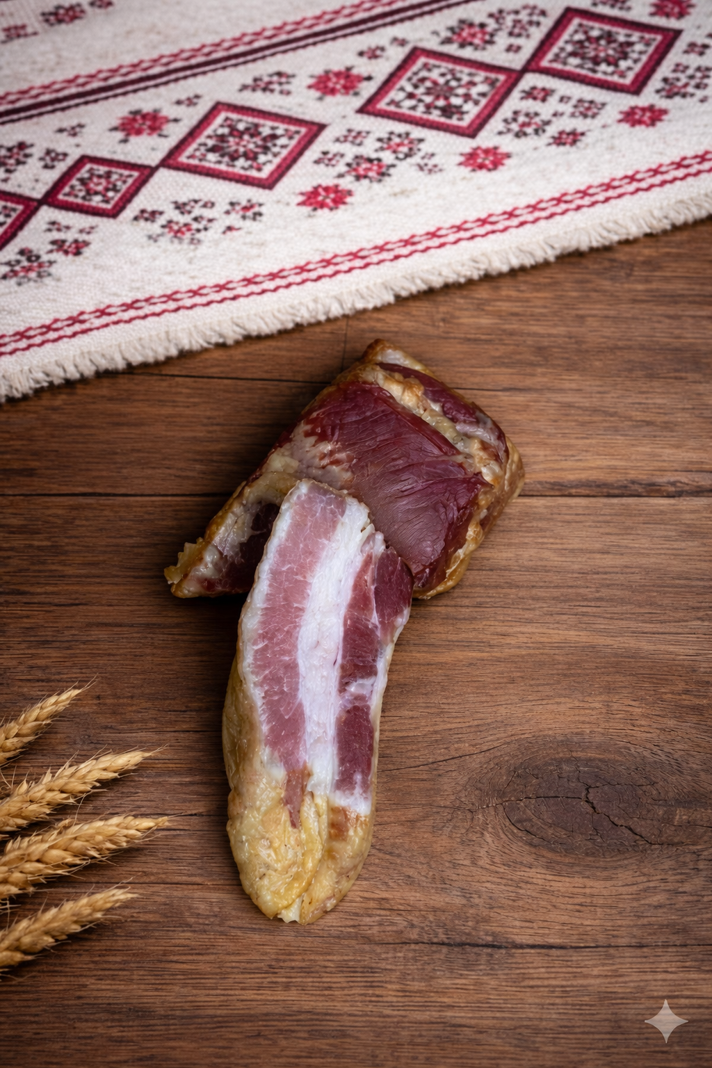 Boczek Wędzony to prawdziwa uczta dla zmysłów – soczysty, pachnący dymem i czosnkiem, subtelnie doprawiony majerankiem i pieprzem. To klasyczny swojski wyrób o kunsztownym charakterze, który podbije każdy wiejski stół, a przy tym doda potrawom szlachetnej głębi i ciepłego, domowego aromatu.